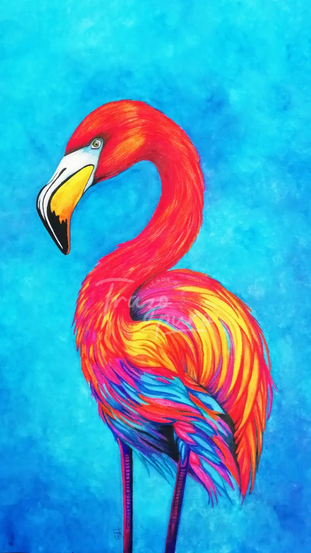Así, el flamenco rosa, se transforma en un flamenco multicolor.
